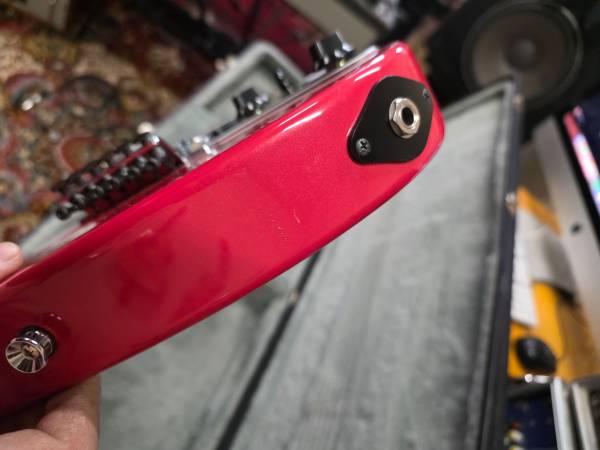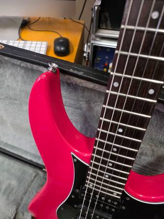 Looks basically unplayed. Plays easy and sounds great. Rare magenta color. There are a few very minor dings. Some surface scratches in pickguard in right light. Comes with an unoriginal hardshell...